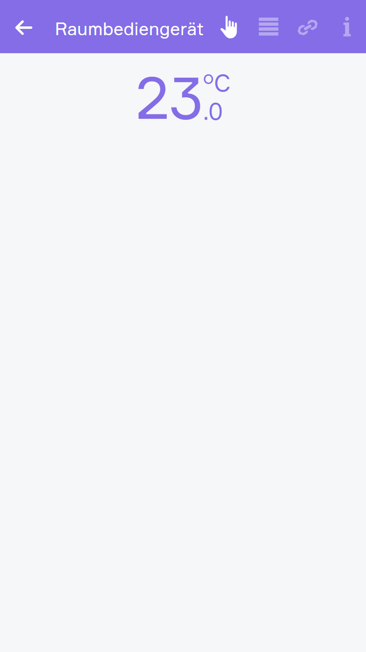 Das Operator Panel eines universellen Raumbediengeräts, zeigt alle im Link-Panel verknüpften Werte an.