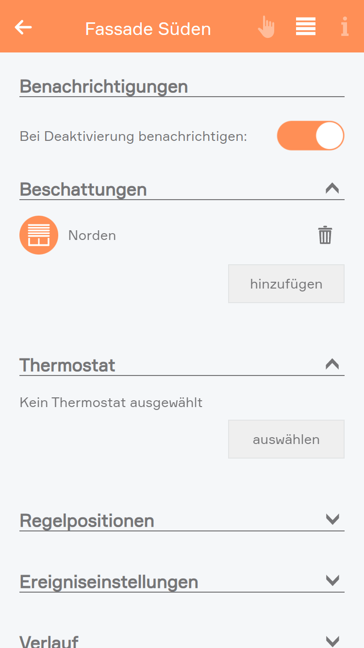 Verknüpfen Sie hier andere Apps oder digitale Eingänge, um das Wochenprogramm darüber zu deaktivieren bzw. wieder zu aktivieren.