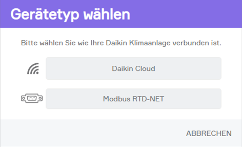 Über Daikin Cloud können cloudfähige Klimageräte von Daikin hinzugefügt werden.