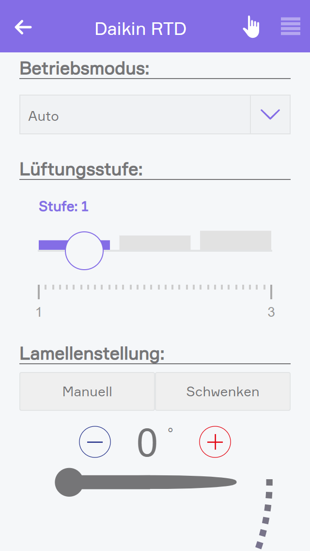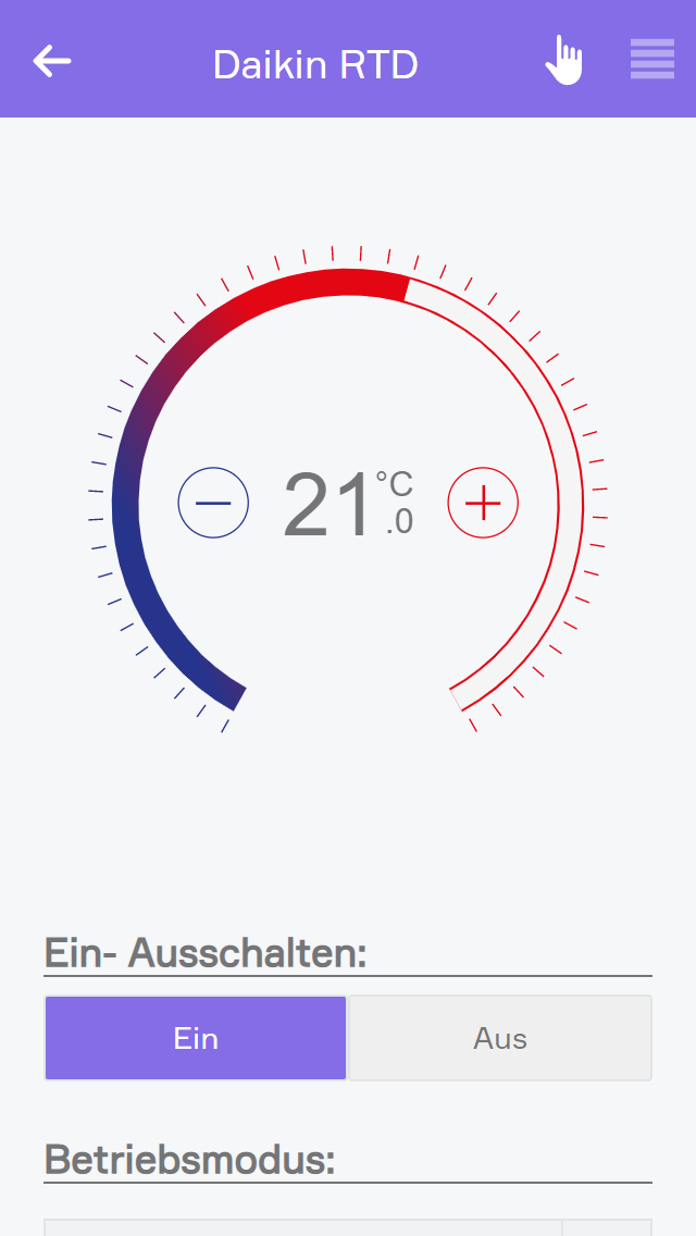 Wurde das Daikin Klimagerät erfolgreich in evon Smart Home eingebunden, stehen mehrere Bedienelemente zur Verfügung.