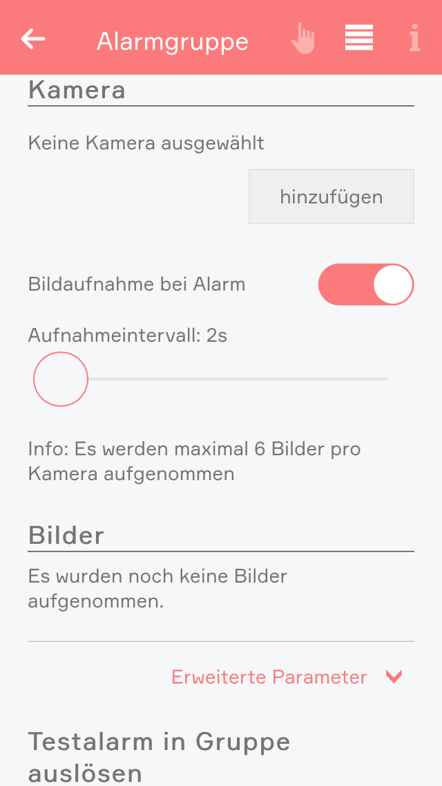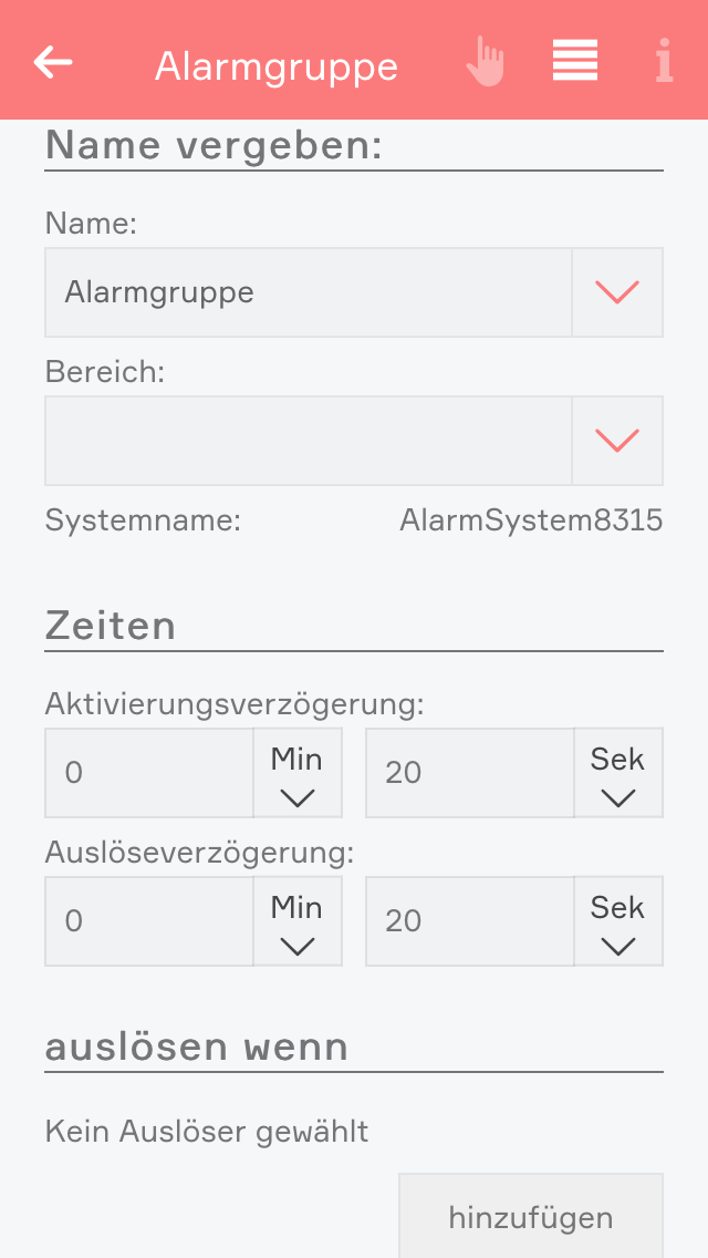 Eine Alarmgruppe stellt einen Bereich Ihres Alarmsystems da, den Sie absichern wollen. Sie können beliebig viele Gruppen erstellen und Ihr Haus somit in einzelne Abschnitte einteilen. Das ermöglicht es Ihnen, unterschiedliche Einstellungen für jede Gruppe vorzunehmen und nur die Gruppen aktiv zu schalten, die Sie benötigen.