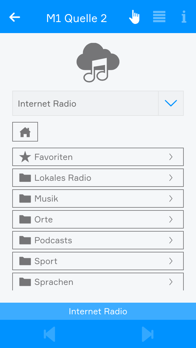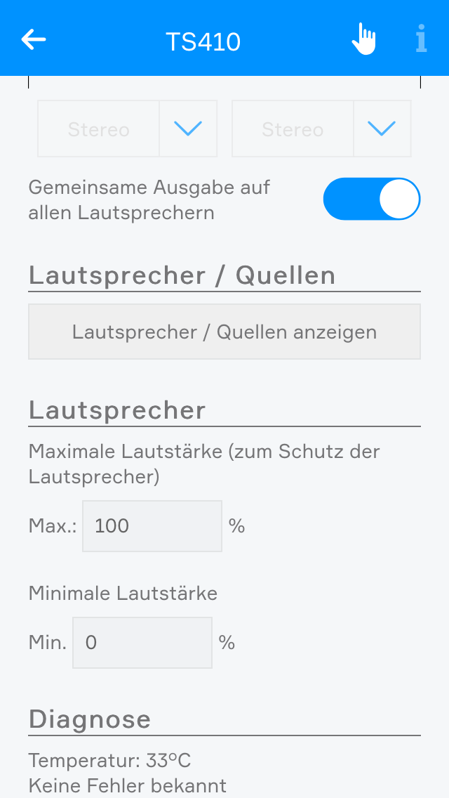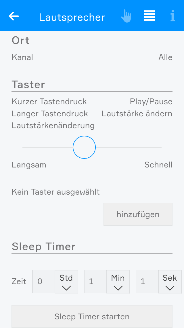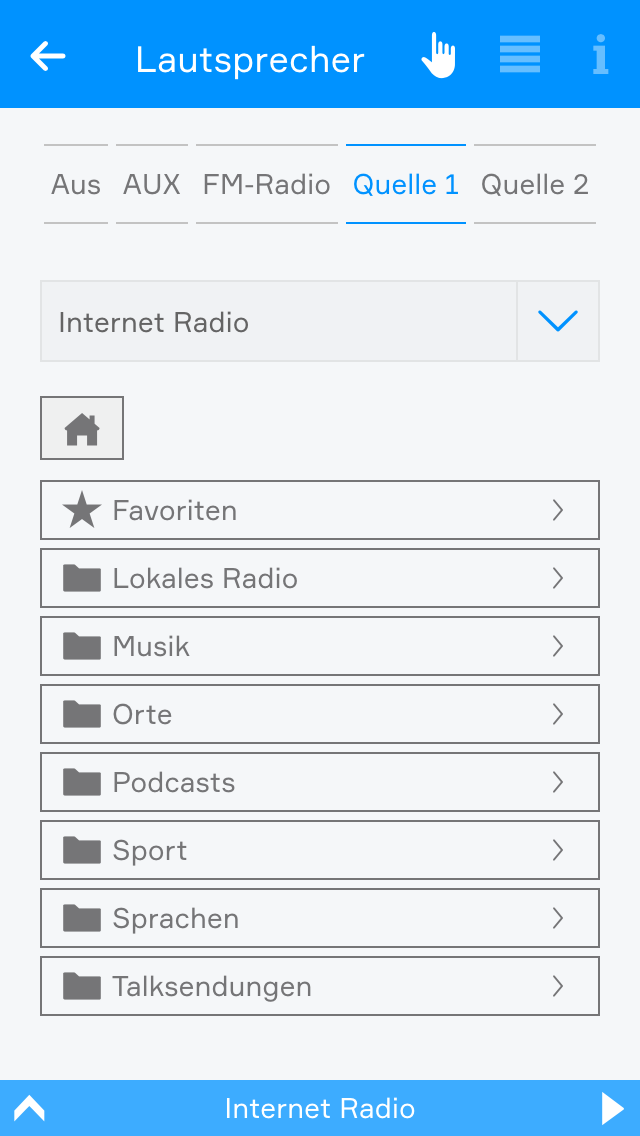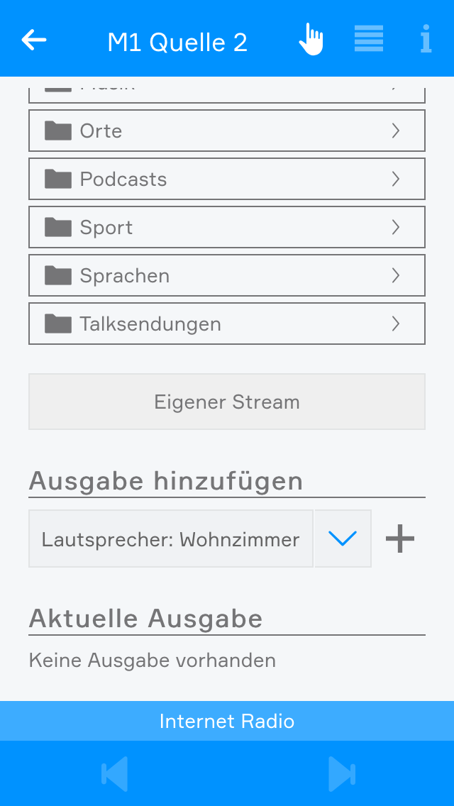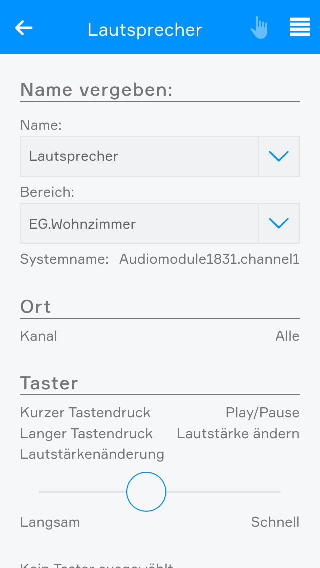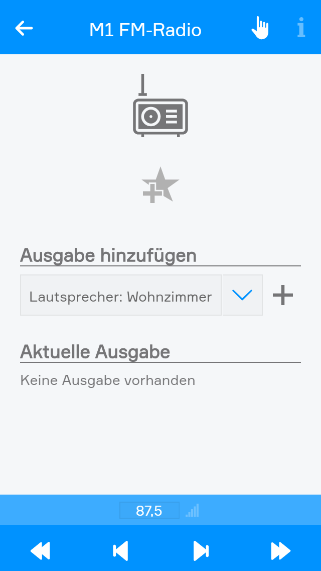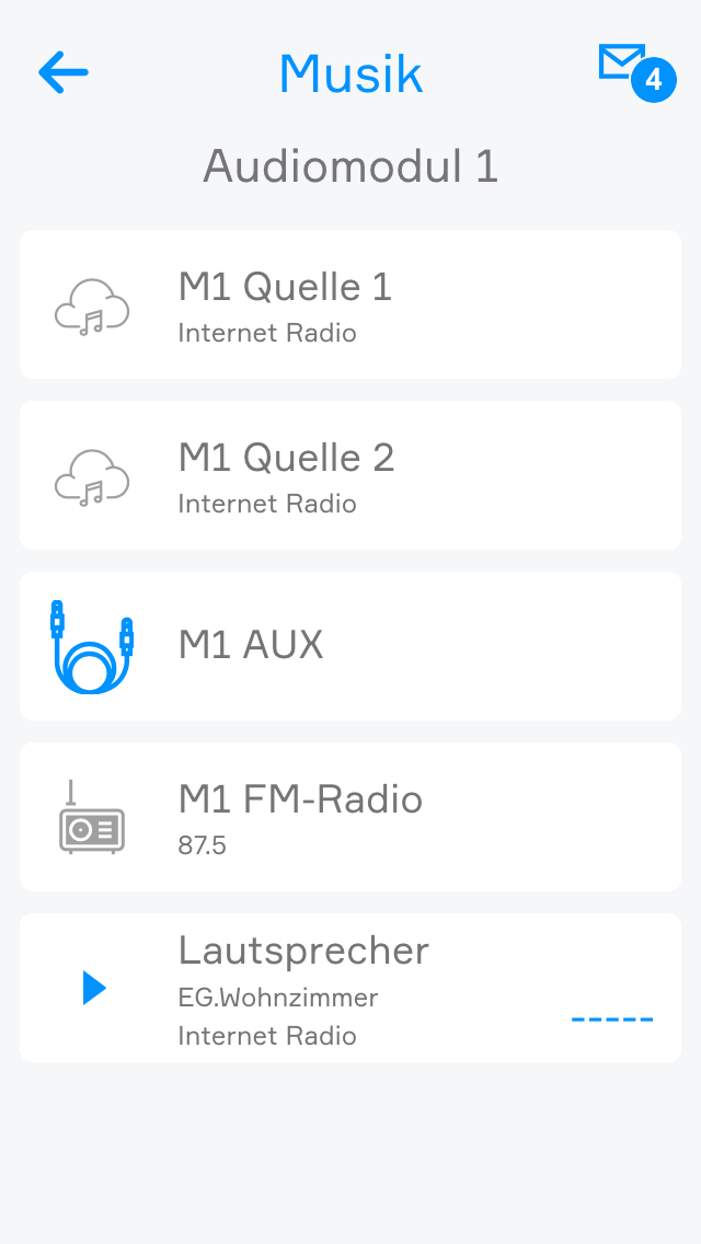 Wenn Sie ein angeschlossenes Audiomodul besitzen, können Sie es mit Hilfe der App "Musik" steuern. Jedes Audiomodul, bietet 4 einzelne Ausgänge an denen Sie Lautsprecher anschließen können, welche dann über die "Musik" App konfiguriert werden können. Außerdem ermöglicht Ihnen dieses Modul die Wiedergabe von Musik aus bis zu 4 verschiedenen Quellen.