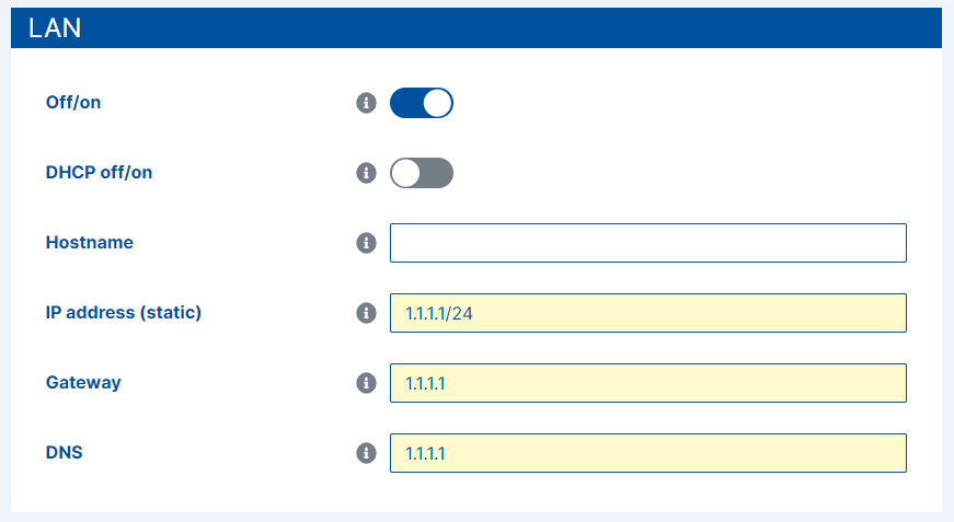 Wählen Sie aus, ob Sie diese Ladestation mittels WLAN oder LAN in Ihr Netzwerk einbinden möchten. Wir empfehlen Ihnen eine statische IP-Adresse einzustellen, da es ansonsten zu Unannehmlichkeiten führen kann. Zudem muss sich die Ladestation im selben Netzwerk wie Ihr evon Smart Home Controller befinden.