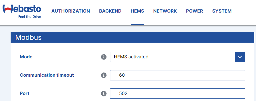 Bei einer Ladestation des Typs "Webasto Live" stellen Sie folgendes ein: