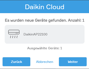 Die Anwendung kann unter 'Einstellungen' - 'Daikin' gefunden werden.