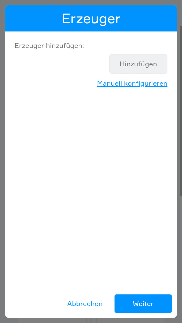 Wenn noch kein Gerät für das Netz definiert wurde, kann es über Hinzufügen oder Manuell konfigurieren ergänzt werden.