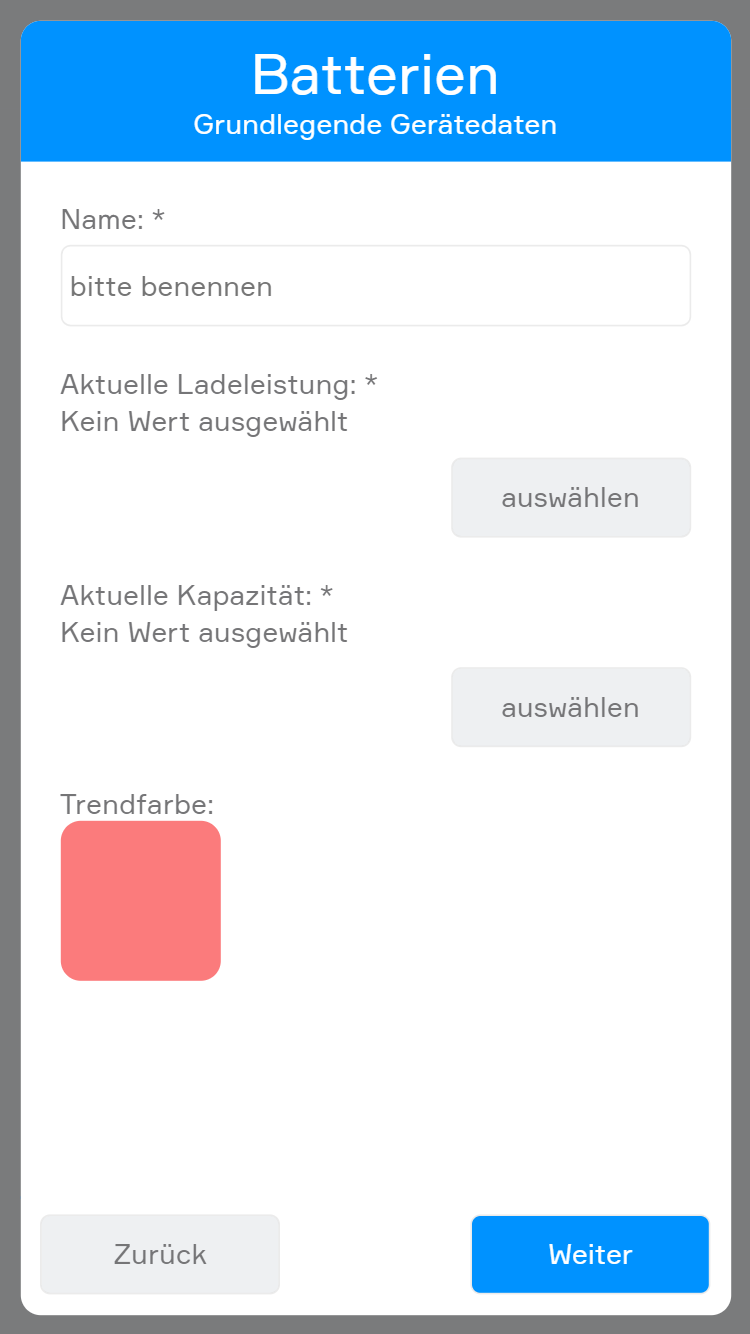 Für die Batterien können folgende Einstellungen vorgenommen werden: