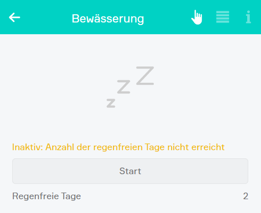 Dieser Status sagt aus, dass die Anzahl an regenfreien Tagen unter dem unter Regensensor eingestellten Wert liegt.