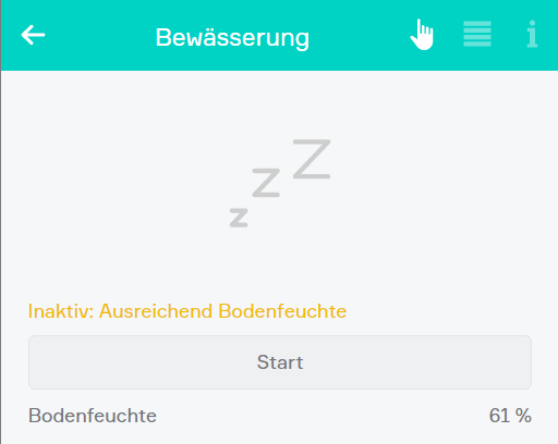 Dieser Status sagt aus, dass die aktuelle Bodenfeuchte über dem unter Bodenfeuchte eingestellten Wert liegt.