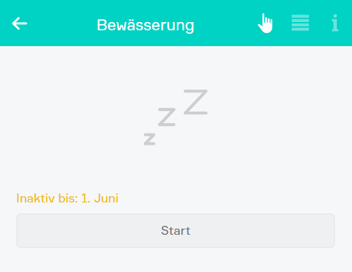 In diesem Zustand werden die Betriebszeiten ignoriert und die Bewässerung startet nicht.