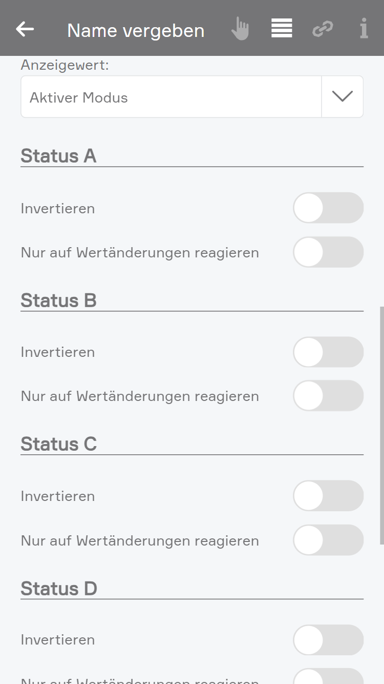Vom boolschen Datenpunkt werden folgende Möglichkeiten für evon Smart Home Logiken bereitgestellt: