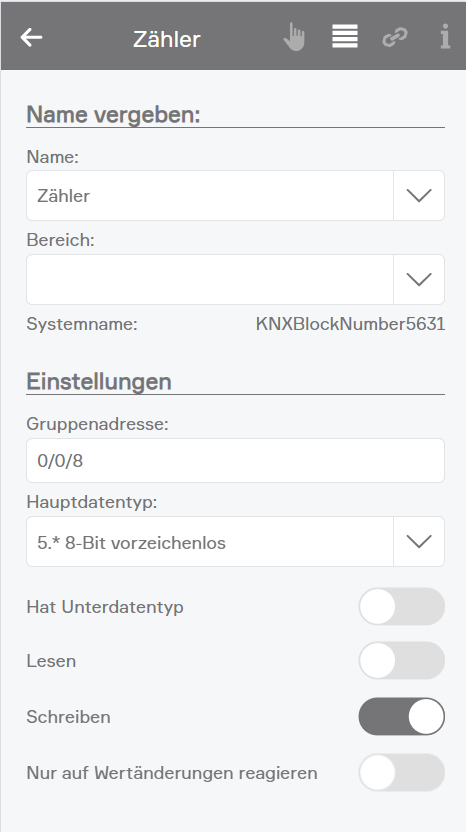 ACHTUNG: Die lesenden Properties sind immer sichtbar, die schreibenden sind nur sichtbar wenn die Option Schreiben aktiviert ist.