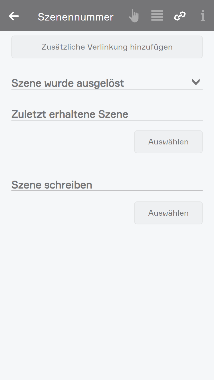 ACHTUNG: Wenn eine Funktion des Szenen Datenpunkts ausgelöst wird, wird der Wert auf den KNX-Bus geschrieben, unabhängig davon ob der Wert sich verändert hat oder im Datenpunkt gleich geblieben ist.