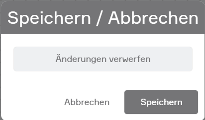 Beim Verlassen des Bearbeitungsmodus (wieder über den Bearbeiten-Button oder über Strg+S) erscheint ein Popup und folgende Optionen stehen zur Verfügung: Speichern: Alle Änderungen werden dauerhaft übernommen. Abbrechen: Schließt das Popup und die Logikgruppe kann weiter bearbeitet werden. Zurücksetzen: Alle vorgenommenen Änderungen werden verworfen und auf den zuletzt gespeicherten Zustand zurückgesetzt.