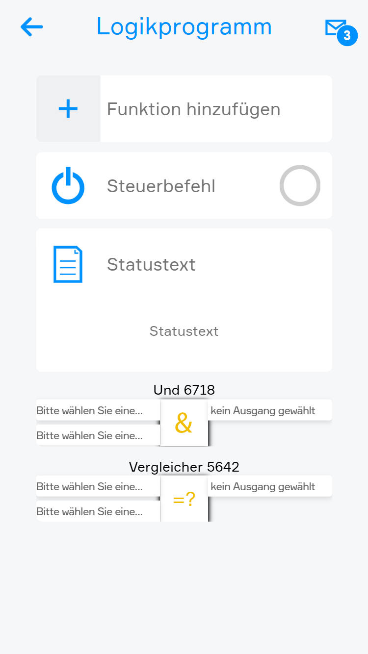 Im mobilen Logikprogramm kann mit einem Klick auf Funktion hinzufügen, neue Logikelemente hinzugefügt werden. Dafür einfach auf das gewünschte Element klicken.