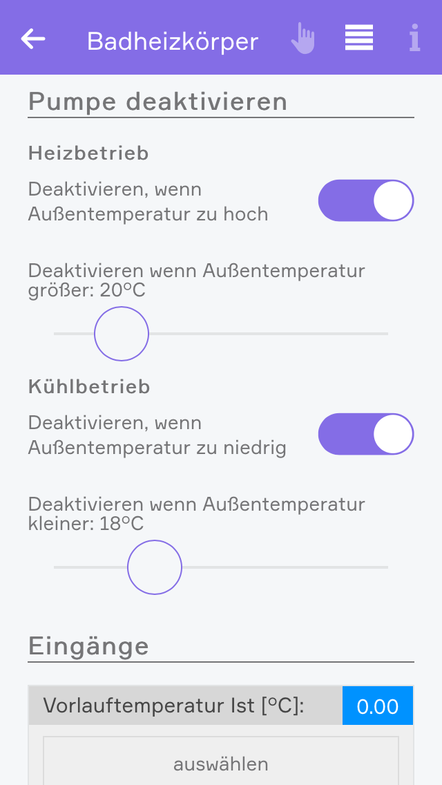 In diesem Abschnitt können Sie die automatische Abschaltung der Pumpe einstellen, wenn von Ihnen festgelegte Temperaturen über- oder unterschritten werden.