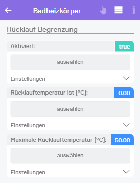 Über diese Einstellung können Sie die maximale Temperatur, die im Rücklauf vorhanden sein darf, regulieren. Wird die eingestellte Temperatur überschritten, wird das Ventil auf diese Temperatur geregelt, bis die Temperatur wieder unter dem vorgegebenen Wert liegt.