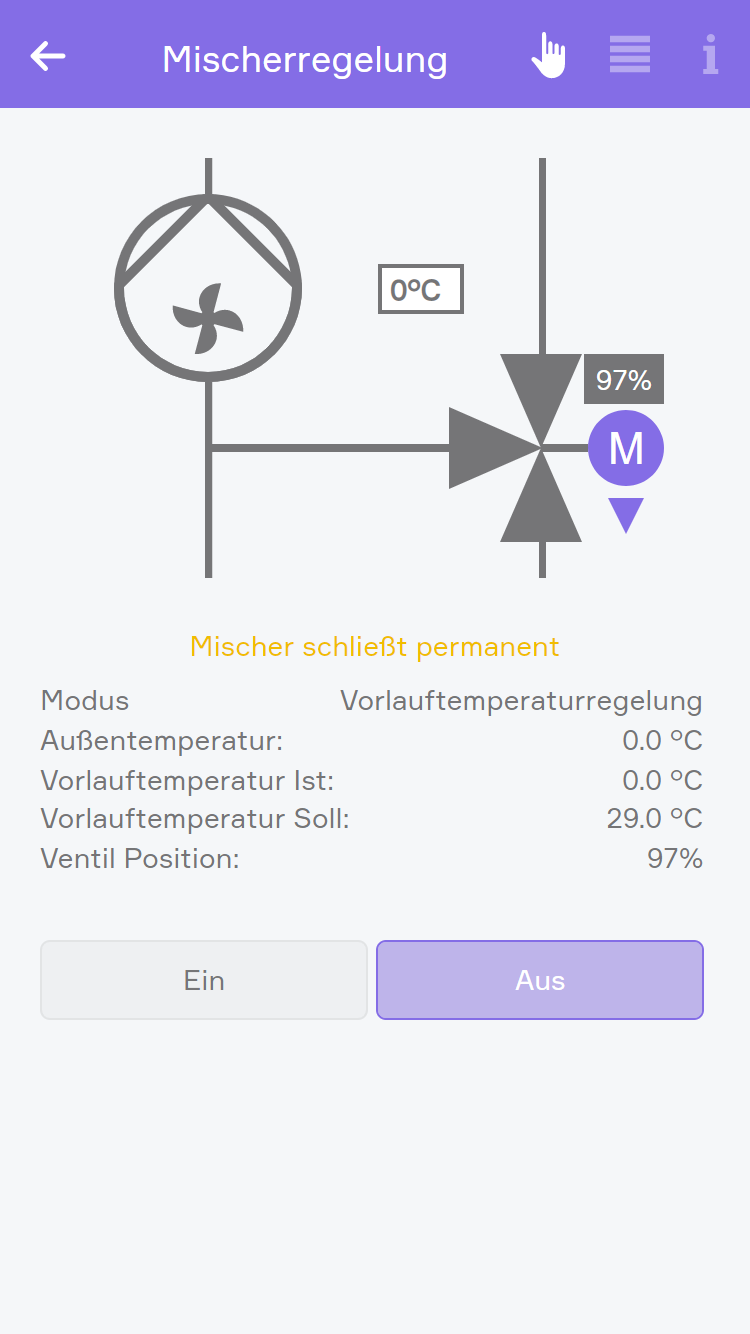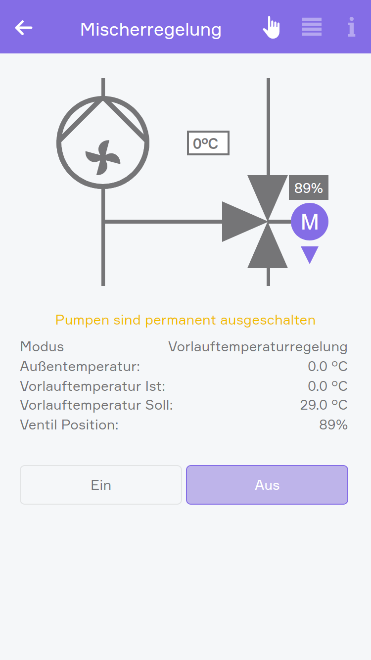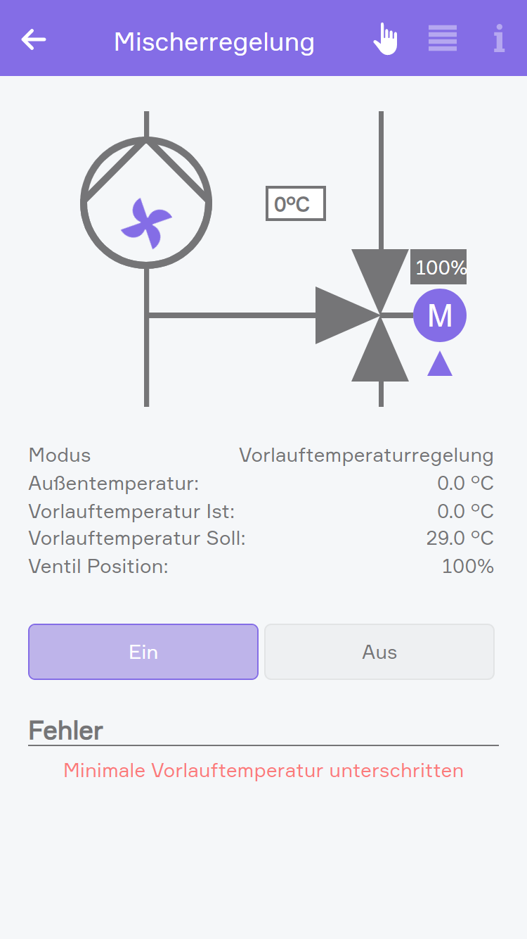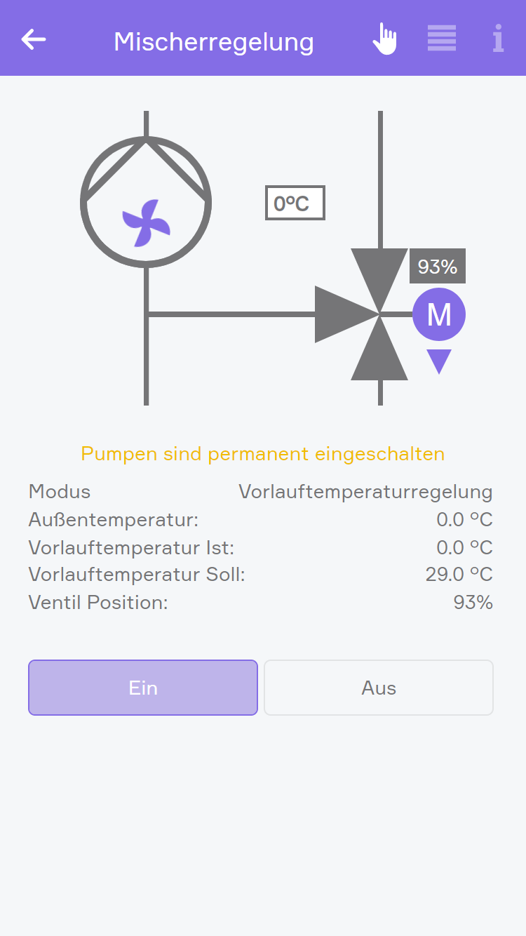 Darunter werden Ihnen alle relevanten Werte Ihrer Mischerregelung angezeigt.