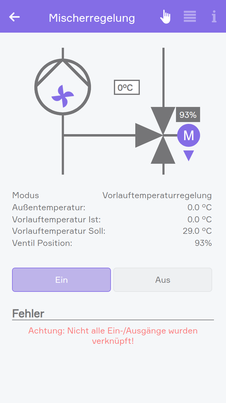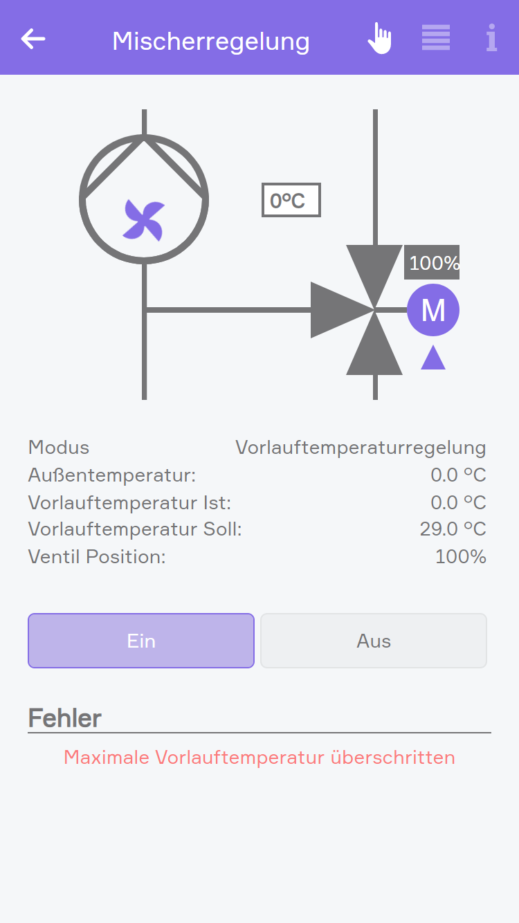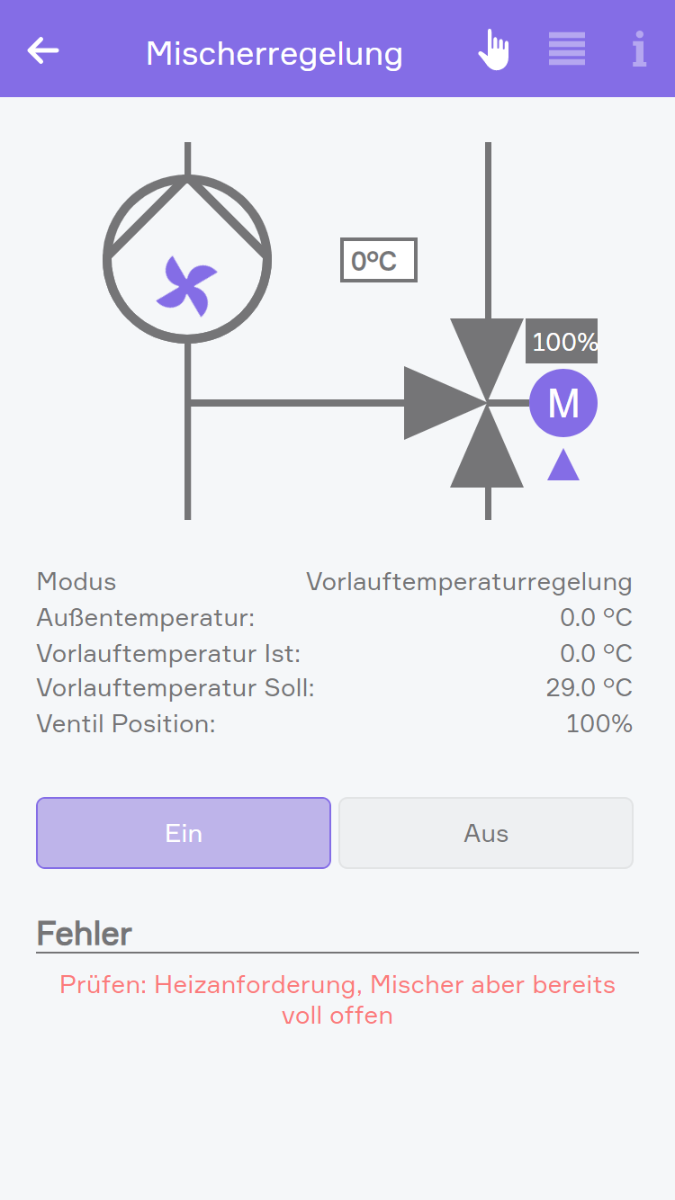 Dieser Fehler sagt aus, dass der Mischer bereits voll geöffnet wurde, aber weiterhin eine Heizanforderung besteht.