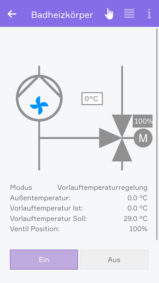Darunter werden Ihnen alle relevanten Werte Ihrer Mischerregelung angezeigt.