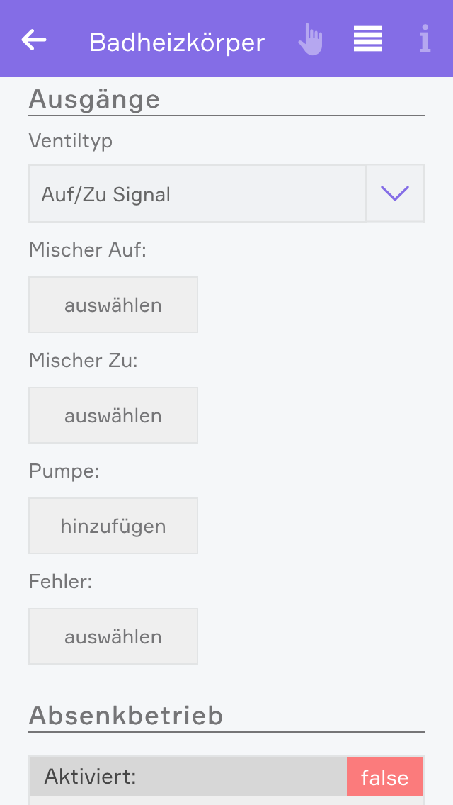 Hier wird der vorhandene Ventiltyp ausgewählt. Zu Wahl stehen analog mit "0-10V Signal" sowie digital "Auf/Zu Signal".