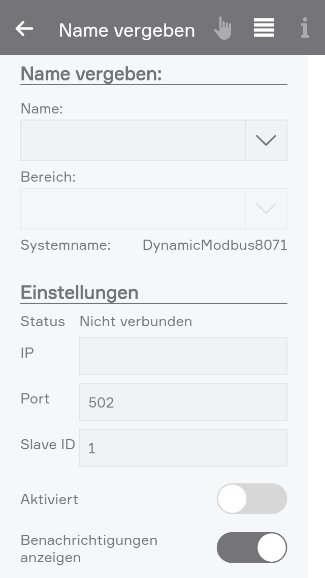 Bei einem Modbus TCP Gerät kann auch ausgewählt werden, ob die Benachrichtigungen angezeigt werden sollen oder nicht.