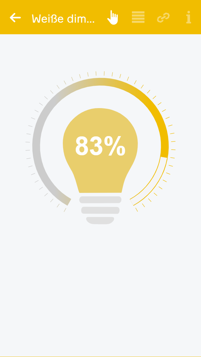 Bei weißen, dimmbaren Philips Hue Lichtern ist im Operator Panel ein Slider zum Einstellen der Helligkeit sowie ein Lichtsymbol, über welche Sie das Licht ein- und ausschalten können, vorhanden.