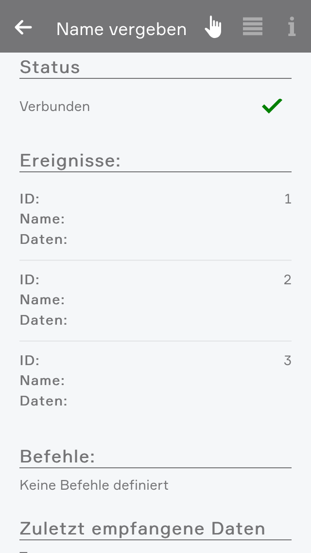 Möchten Sie einen neuen Befehl erstellen, können Sie dies hier mit dem Button 'Neuer Befehl' tun. Legen Sie danach einen Namen für Ihren Befehl fest, sowie die Daten die gesendet werden sollen. Sie können einen einfachen Text oder auch Hex-Werte wählen. Danach können Sie optional noch bestimmen, ob Sie eine bestimmte Antwort von dem verbundenen Gerät erwarten. Auch hier können Sie sich zwischen Text oder Hex-Wert entscheiden.