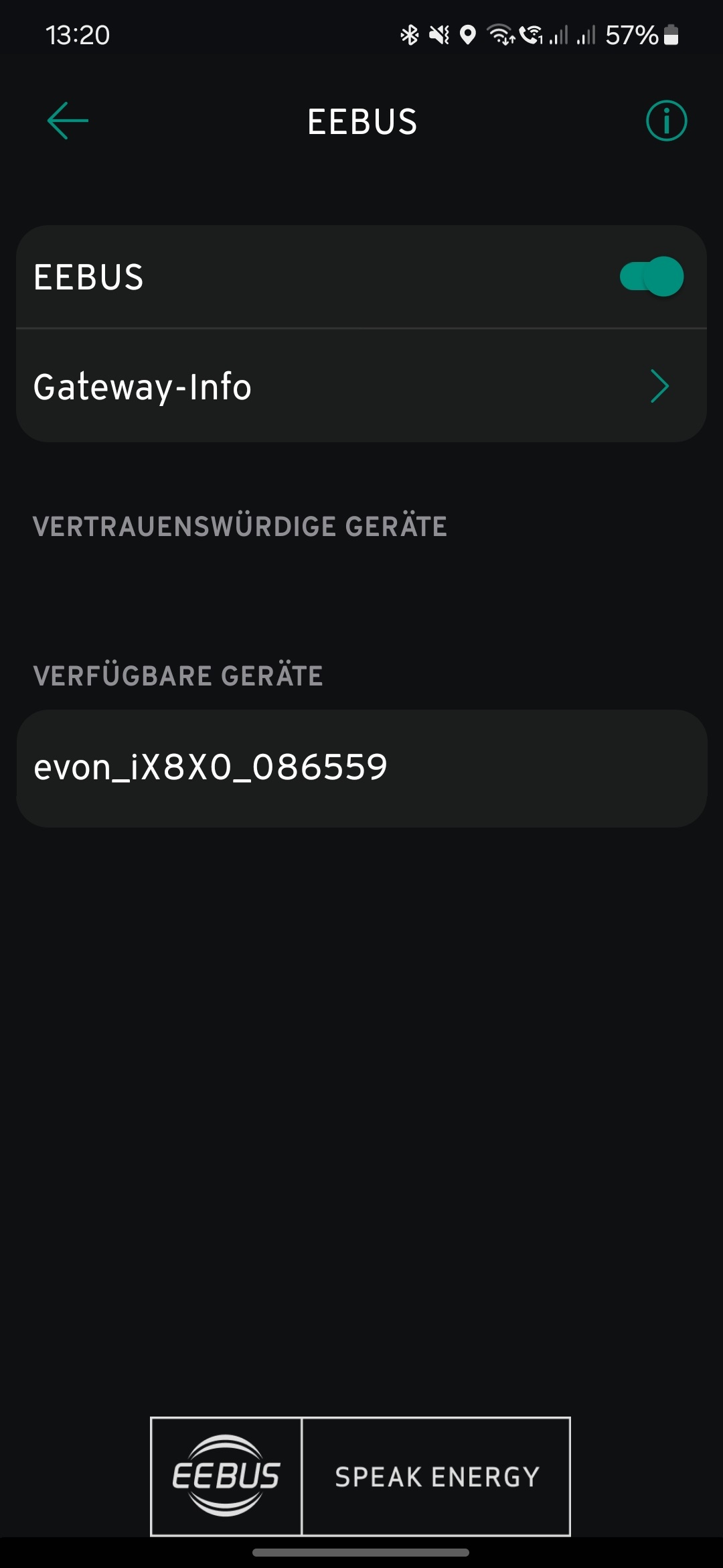 - Freigabe der EEBus Verbindung in beiden Apps erforderlich