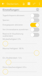 Im Parameterpanel kannst Du noch zusätzlich angeben, ob dieser Denon mit Universalszenen mitgeschalten wird (“Von Universalszene ausnehmen”) und wie laut dieser Denon maximal eingestellt werden kann.