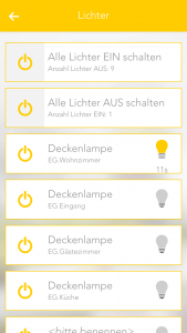 Alle verbundenen Philips Hue Lichter werden auch in der Lichter App, die Du unter "Alle Apps" - "Lichter" finden kannst, angezeigt.