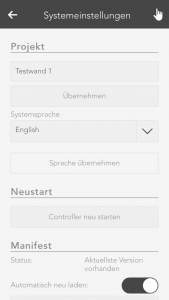 Ist die Lüftung nicht aktiv oder kein digitaler Ausgang für die Schaltung des Betriebsstatus konfiguriert, sind alle hier sichtbaren Bedienelemente ausgegraut und nicht verwendbar. Außerdem müssen die digitalen Ausgänge der betreffenden Bedienelemente konfiguriert worden sein, um diese zu aktivieren.