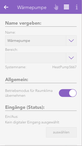 Die Verwendung der digitalen Eingänge ist für den Betrieb der Wärmepumpen-App nicht zwingend erforderlich. Solltest Du nicht alle oder keine der digitalen Eingänge konfiguriert haben, werden für die angezeigten Werte (Modus, Status) die aktuellen Zustände der digitalen Ausgänge verwendet.