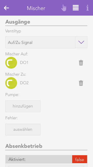 Die Verwendung der digitalen Eingänge ist für den Betrieb der Lüftungs-App nicht zwingend erforderlich. Solltest Du den Eingang für den Betriebsstatus nicht konfiguriert haben, wird für den angezeigten Wert der aktuelle Zustand des entsprechenden digitalen Ausgangs verwendet.