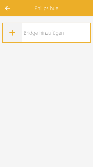 Jede Philips Hue Bridge, die mit evonHOME verbunden ist, wird hier gelistet. Verwende das "Bridge hinzufügen" Panel, um eine neue Bridge hinzuzufügen.