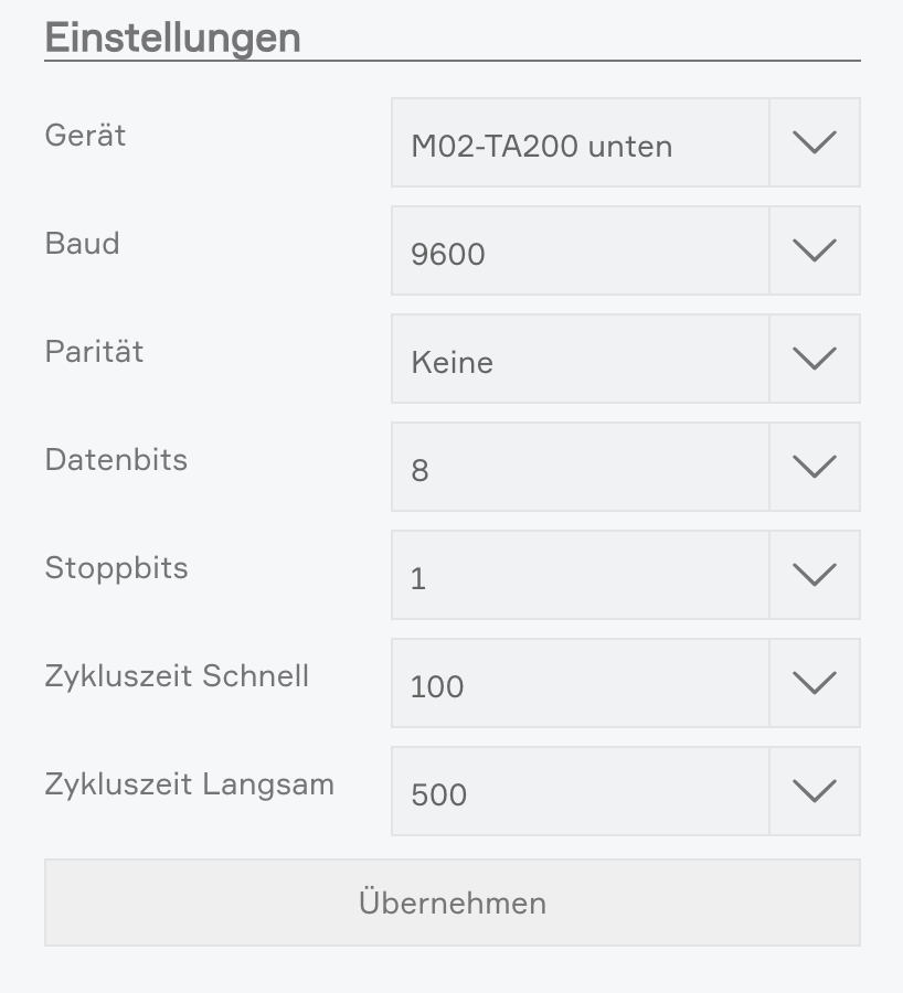 Im Parameter Panel der Modbus RTU Linie können Sie diese konfigurieren.