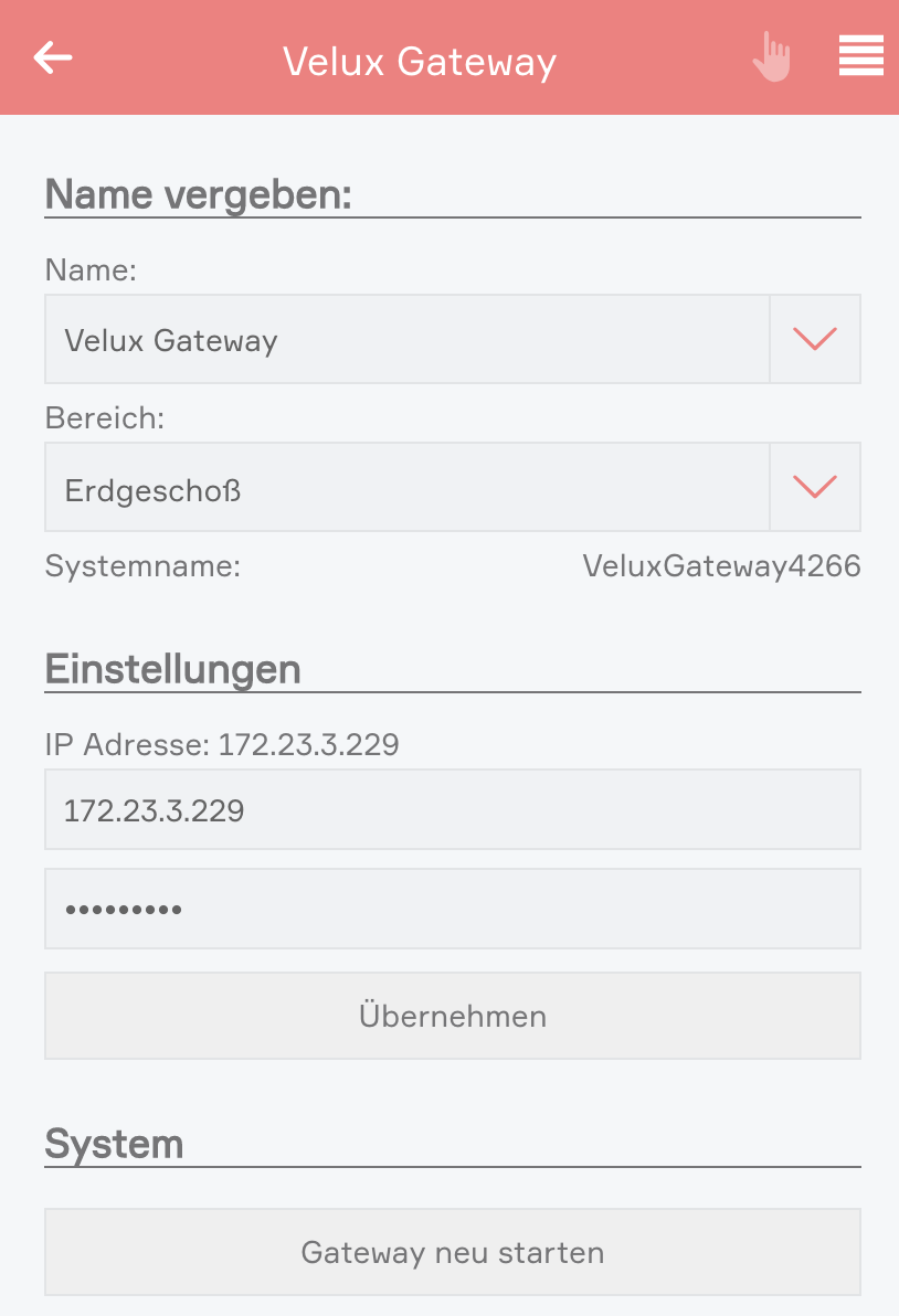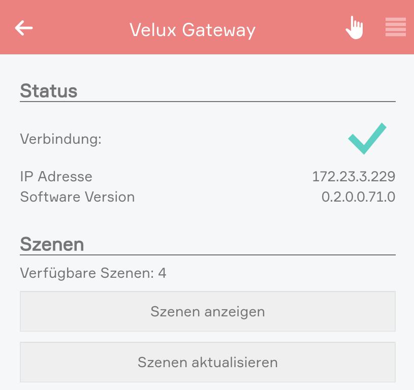 Um Ihre Velux Geräte zu integrieren, müssen Sie diese mit einem Velux KLF200 Interface verknüpft sein.