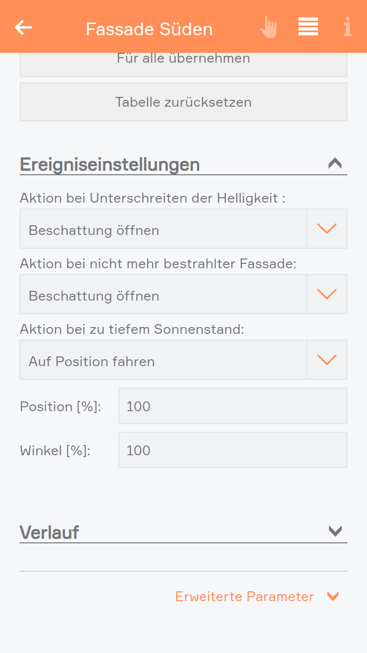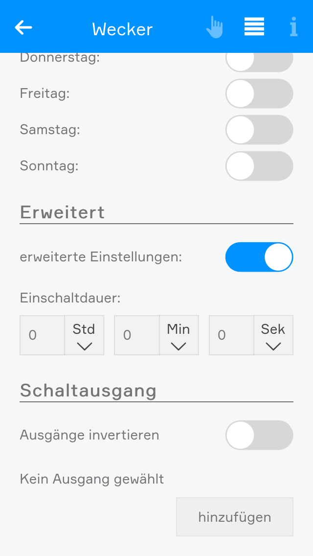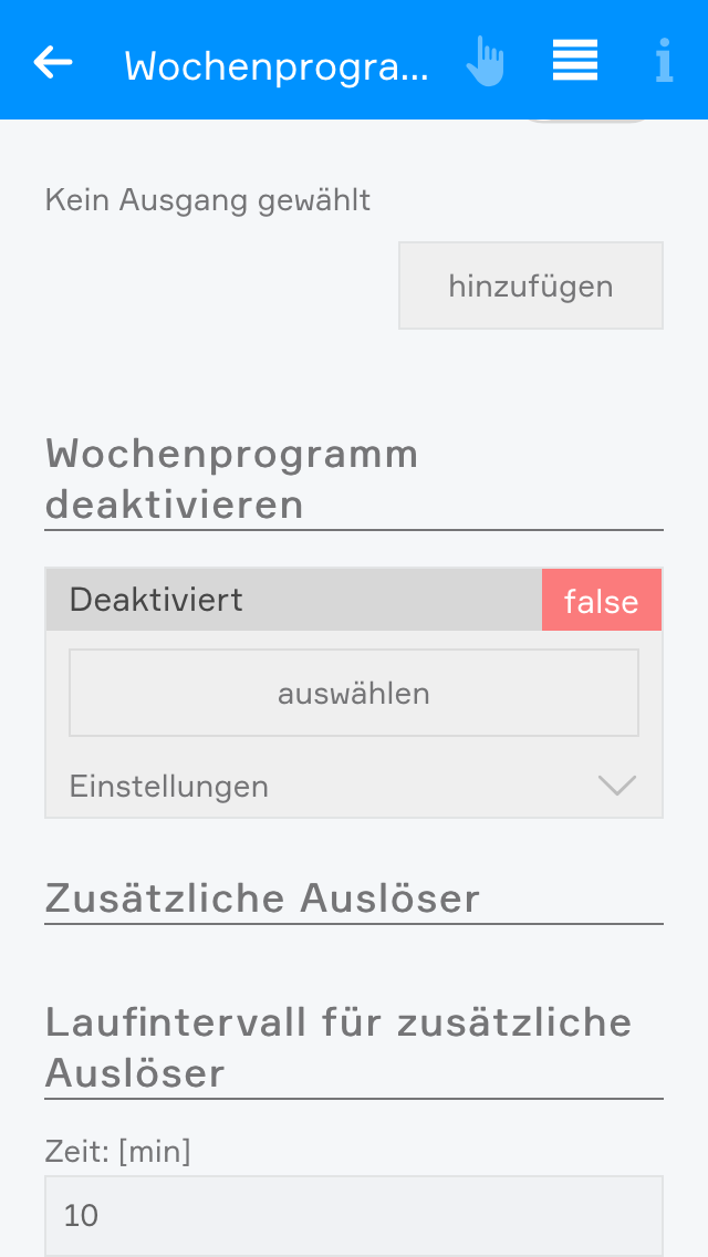 Verknüpfen Sie hier andere Apps oder digitale Eingänge, um das Wochenprogramm darüber zu deaktivieren bzw. wieder zu aktivieren.