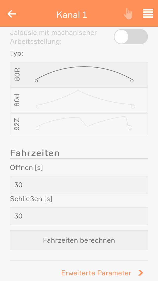 Im Parameter Panel können Sie die Konfiguration jederzeit ändern.