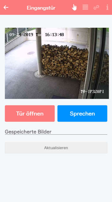 Sobald jemand den Klingeltaster dieser Tür betätigt, bekommen Sie eine Benachrichtigung und es wird auch ein Foto von Zeitpunkt des Klingelns aufgenommen, welches Sie dann sehen, wenn Sie die Benachrichtigung öffnen.