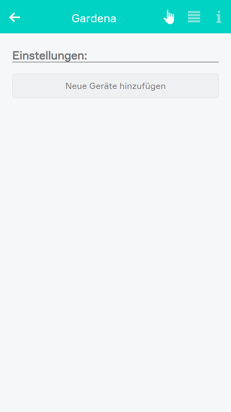 Mit einem Klick auf das Gardena Object Panel öffnet sich das statische Operator Panel. Hier können weitere Geräte hinzugefügt werden.