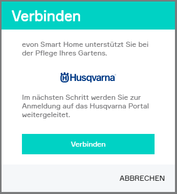 Durch einen Klick auf "Verbinden" werden Sie auf die Husqvarna Seite weitergeleitet um sich mit Ihrem Konto zu verbinden. Führen Sie die dort beschriebenen Schritte aus um sich anzumelden und evon Smart Home die Verbindung zu authorisieren.