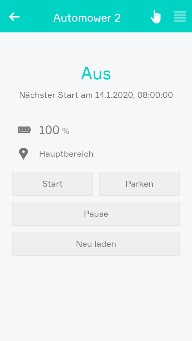 Außerdem kann über den Button "Neu laden" der Status des Mähers aktualisiert werden.