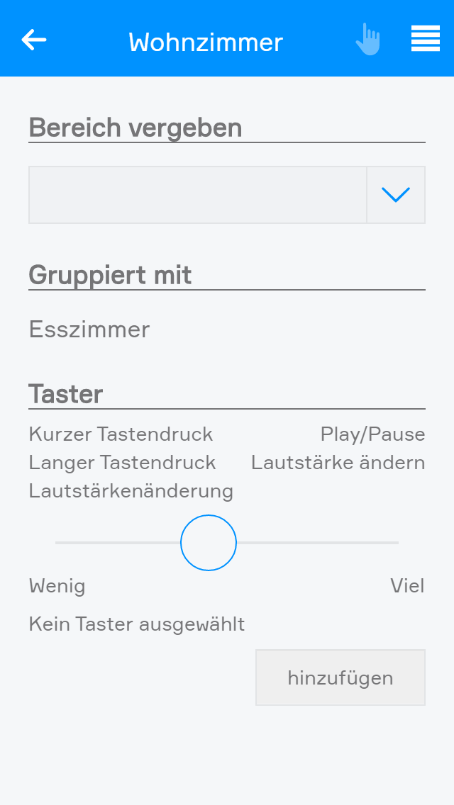 Unter dem Punkt "Taster" können Sie Taster hinzufügen, über welchen die Wiedergabe gesteuert werden soll. Dadurch kann über einen kurzen Tastendruck die Wiedergabe pausiert und fortgesetzt werden und durch einen langen Tastendruck die Lautstärke angepasst werden.