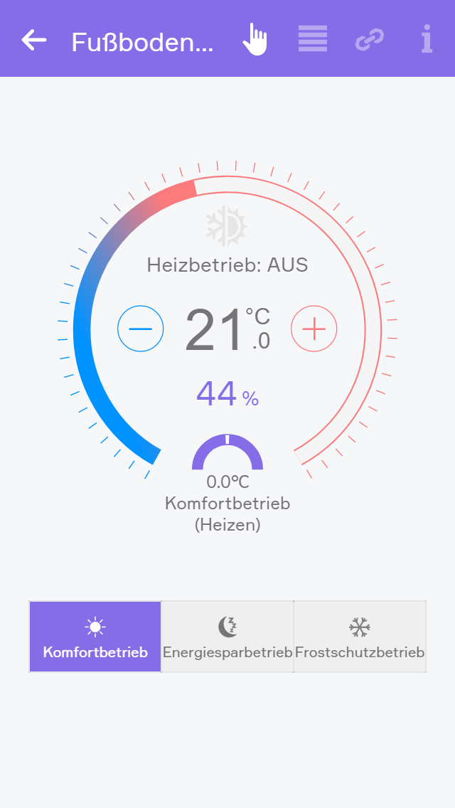 Zusätzlich können Sie jeden Raum mit einem Raumthermostat verknüpfen. Dies machen Sie indem Sie in der App Raumklima ein Element diesem Raum zuweisen. Haben Sie einem Raum mehrere Raumthermostate zugewiesen, so können Sie im Parameterpanel des Raumes, das Raumthermostat wählen, welches Sie für die Anzeige der Raumtemperatur verwenden wollen.