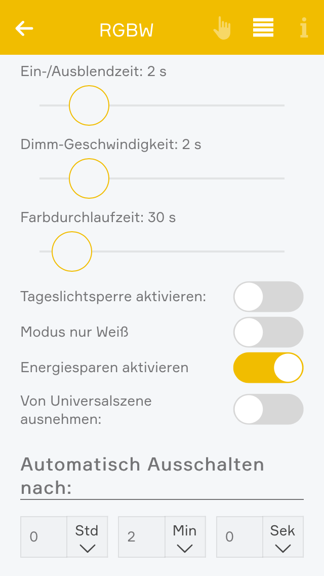 Wenn Sie „Sperren“ aktivieren, können Sie das Licht weder über die Taster/Bewegungsmelder, noch über die App ein- bzw. ausschalten.