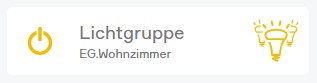 Über die App können Sie ein Licht über das „Power Symbol“ auf der linken Seite des ein- bzw. ausschalten. Auf der rechten Seite dieses Panels sehen Sie ob das Licht gerade ein- oder ausgeschaltet ist. Über einen Klick auf das Element kommen Sie in die erweiterte Bedienung bzw. Konfiguration dieses Lichts. Hier können Sie das Licht ein- bzw. ausschalten indem Sie auf die Glühbirne klicken.