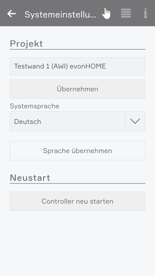 Des Weiteren können Sie Wiederherstellungspunkte erstellen. Mit diesen Wiederherstellungspunkten können Sie Ihr evon Smart Home, falls Sie etwas verstellt haben, auf einen früheren Zeitpunkt zurücksetzen. Ein solcher Wiederherstellungspunkt wird Ihnen empfohlen, wenn Sie alle Ihre Lichter, Jalousien usw. benannt und nach Ihren Bedürfnissen eingestellt haben. Mit dem Button „Werkseinstellungen wiederherstellen“ können Sie Ihr evon Smart Home auf den Auslieferungszustand zurücksetzen.
