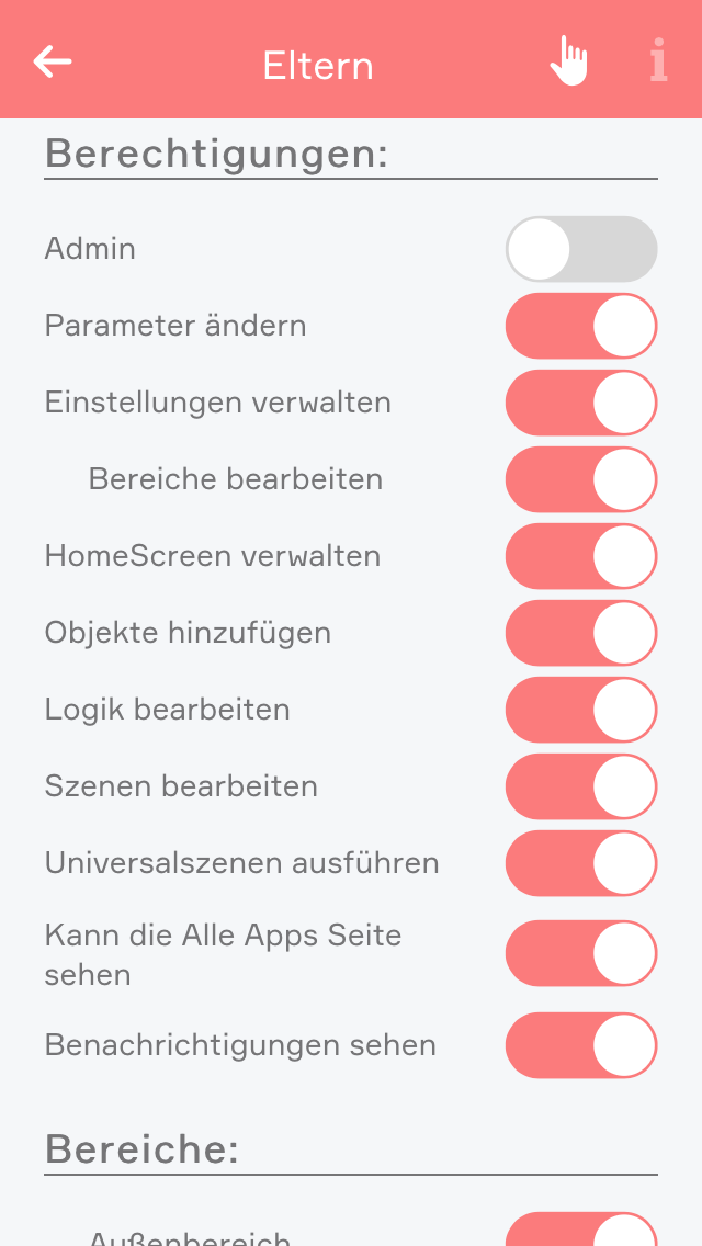Mit den Berechtigungen können Sie angeben was die Benutzer der Gruppe alles in Ihrem evon Smart Home machen dürfen.