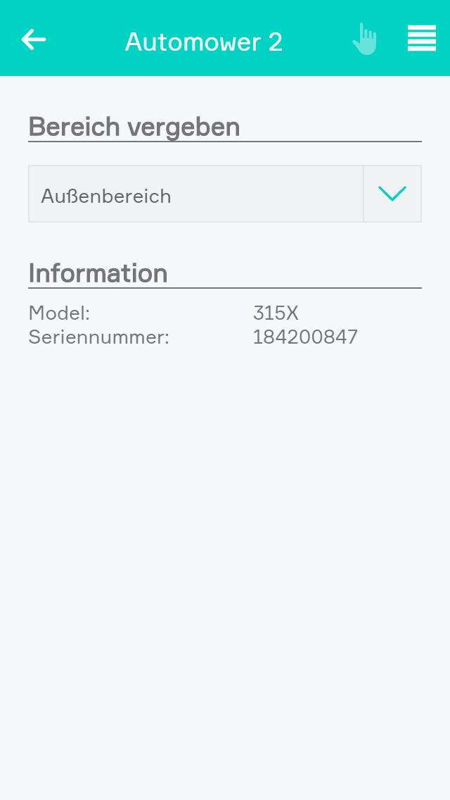 Der Mähroboter kann über das Parameter Panel einem Bereich hinzugefügt werden.